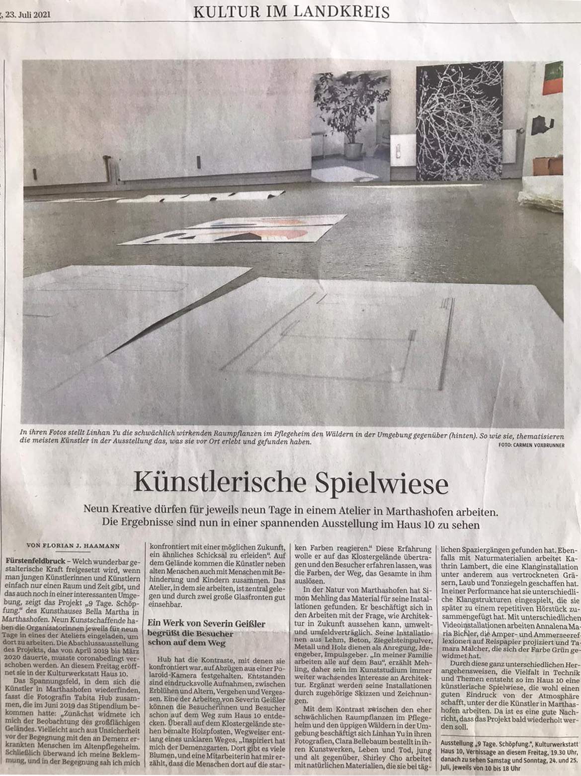 Das Kurzzeitstipendium ermöglichte es Kunststudierenden und - absolvent*innen 9 +1 Tage in das soziale Umfeld Marthashofen einzutauchen, interaktiv künstlerisch zu arbeiten und das Ergebnis in einer Ausstellung zu präsentieren.