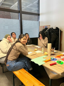 Das Altenwerk schenkt Auszubildenden und Mitarbeitenden aus 28 Nationen jeden Monat einen Tag FreiRaum Kultur. Das Kunsthaus-Team konzipiert und begleitet das Programm. Ihre Erlebnisse halten die Teilnehmenden auf selbstgemalten Postkarten fest.